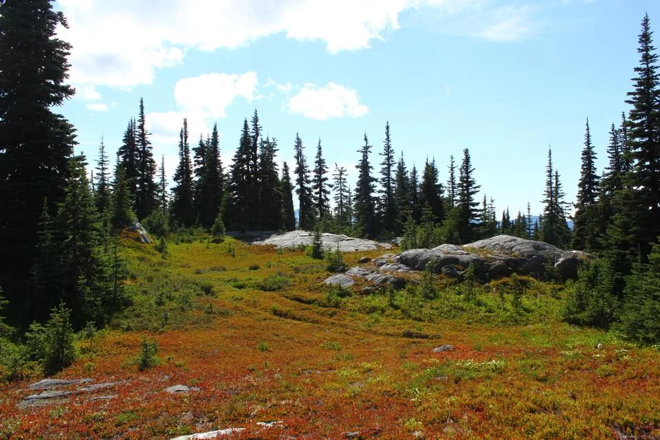 After passing through Manning Park, we fuelled up, aired down and set off on the road. As boys will be boys, we took our time getting through the trail, repeating rock climbs and mud pits, enjoying the warm sunshine and fun on the trail. At every ‘obstacle’ everyone got out of the truck, stretched, moved around and offered guidance. This gave me a chance to do some exploring, walking off the trail where I found scattered lakes, vibrant colours and mountain views.